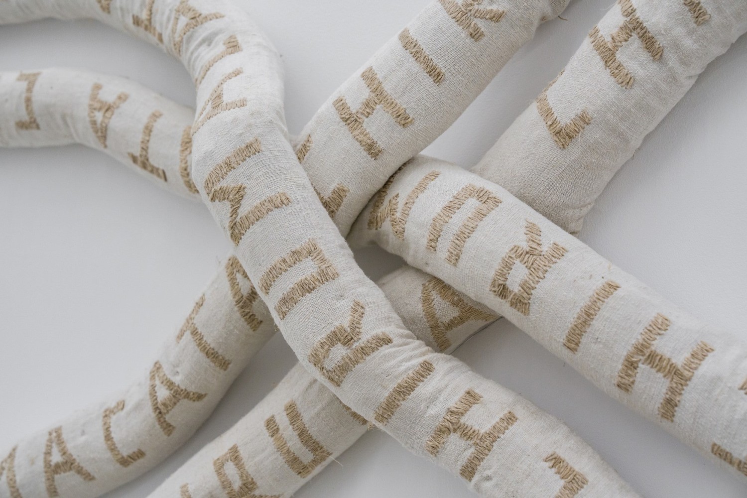 Refacerea draws on this symbolic continuum. Resonant with Indigenous cosmologies, Eastern spirituality, and Christian mysticism, the work engages archetypes of healing not as metaphors but as active forces. Herbs cleanse and recalibrate; handwoven cloth embodies continuity, linking past traditions with present practice; inscribed words create cadence and attention. The sacred is neither distant nor abstract, but material, embodied, and shared. Rather than providing resolutions, Zidaru’s work leaves us with a provocation: for the artist resilience is not merely a survival technique, but is rather inseparable from the consolations of the spirit, then where and how can it be cultivated within the fractures of contemporary life?