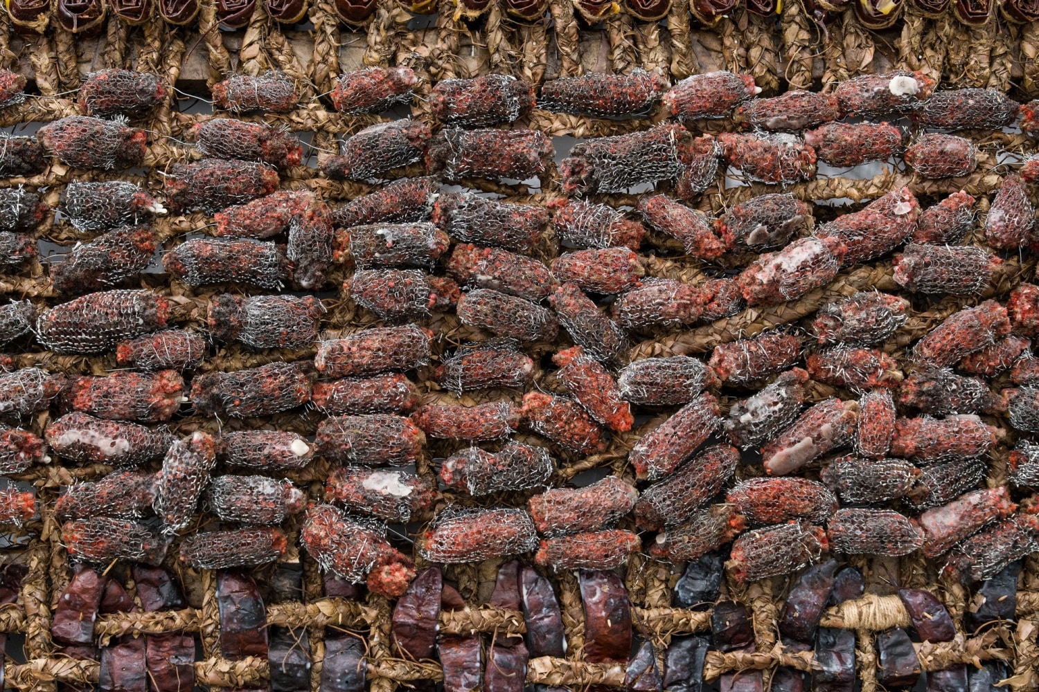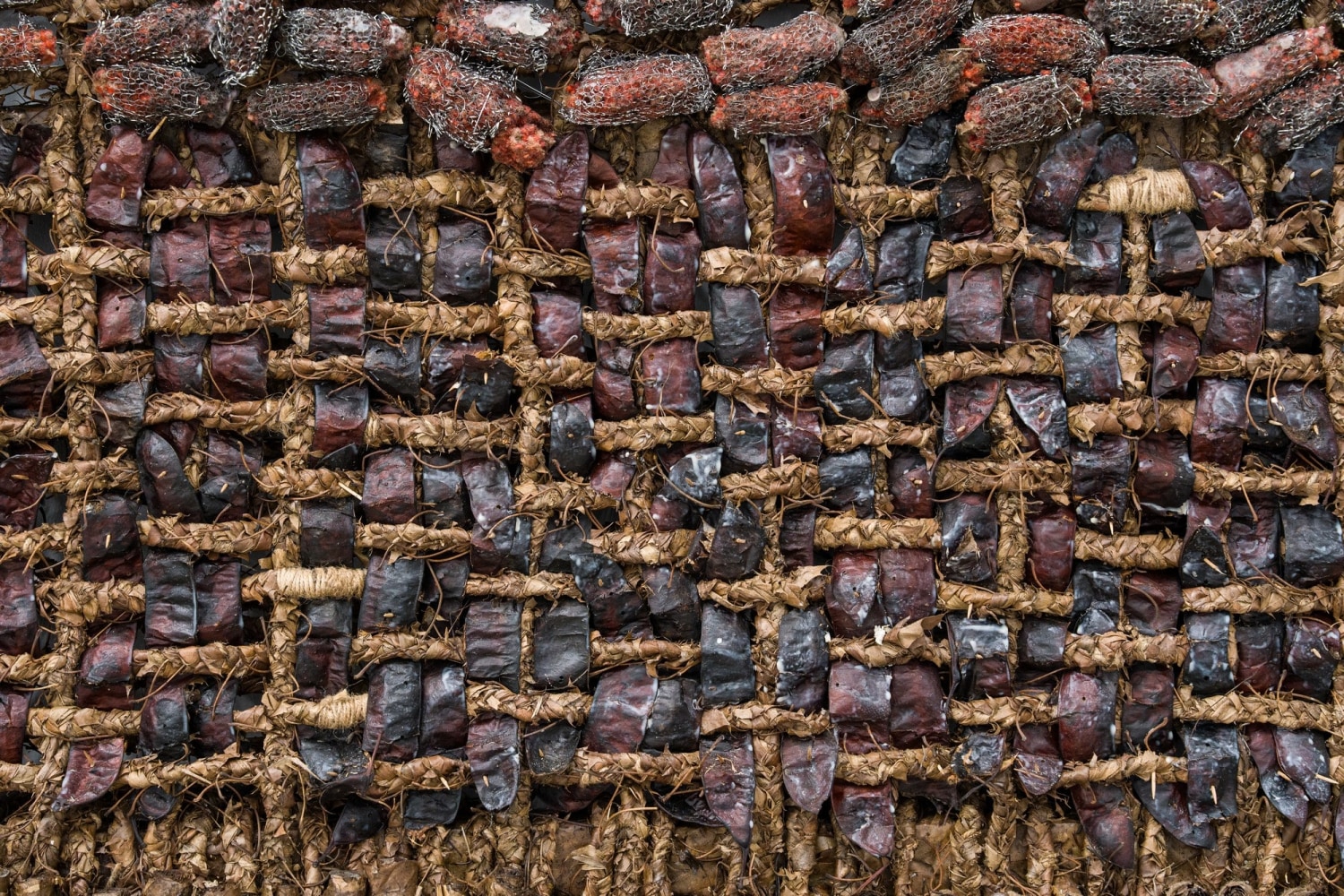 Refacerea (“remaking”) presents the work of Victoria Zidaru, a Romanian artist whose four-decade-long practice explores ritual and spirituality, through natural materials. The title signals both a gesture and a method: a resilient practice of remaking, in which fractures become sites of renewal and continuity. Every element: plants, handwoven textiles, and inscribed words, are deliberately considered, and olfactory components are incorporated to heighten presence and attention, shaping a fully embodied sensory experience.