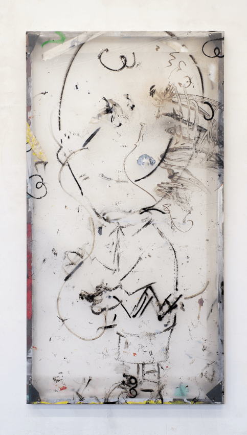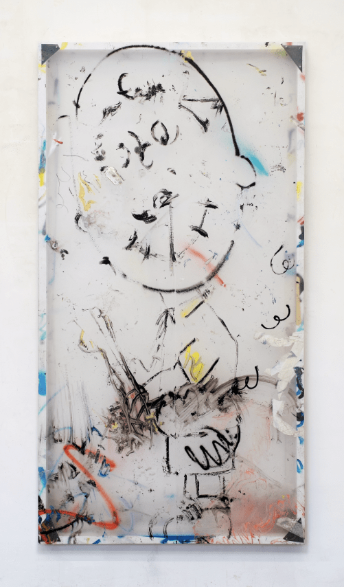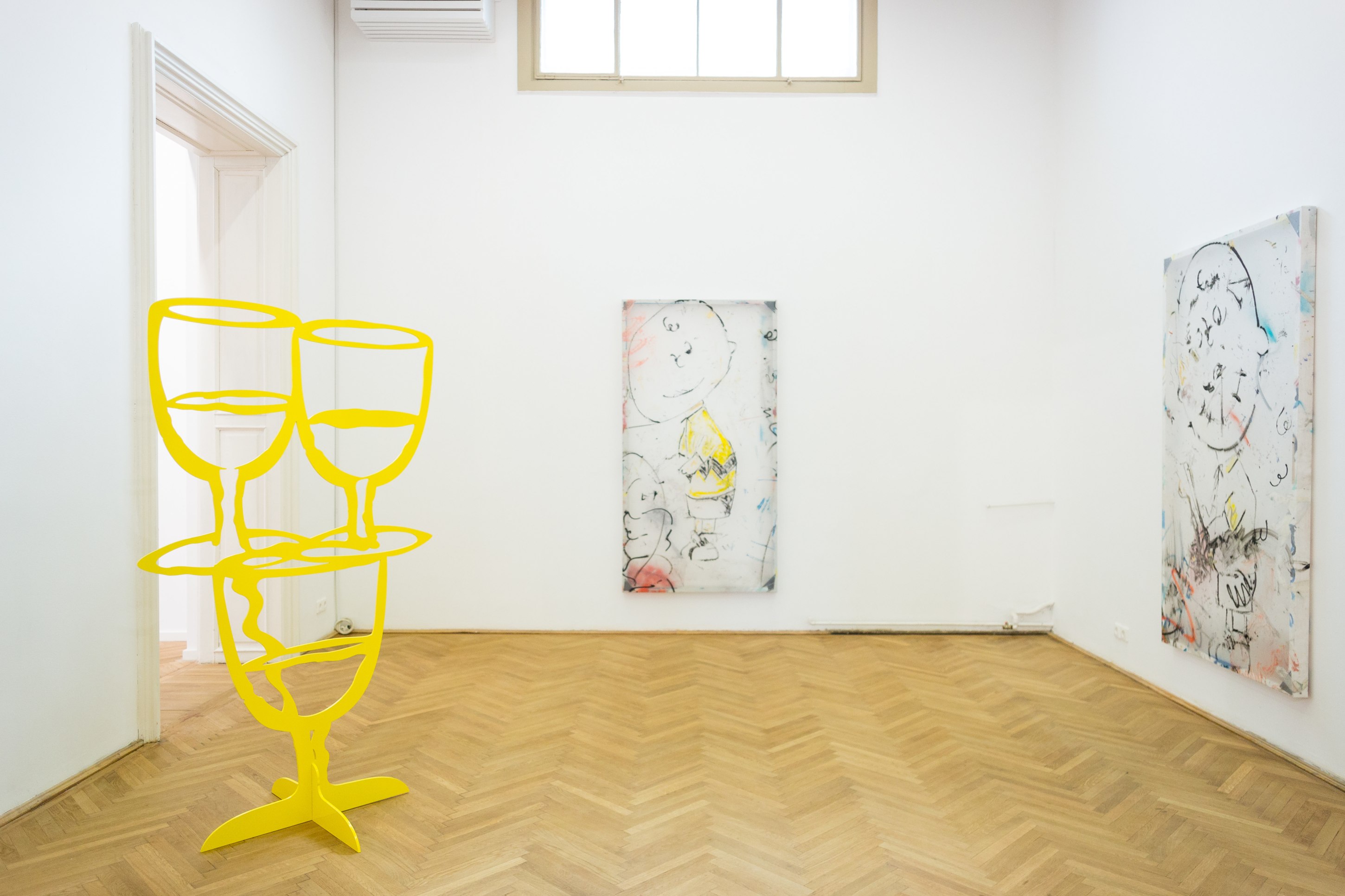 Galeria Nicodim Bucharest is thrilled to present a group exhibition curated by Domenico de Chirico. The paintings, sculptures, and wall works in this show chisel loose the shape and image of everyday scenes, stripping away their original associations and making visible the characters and materials that weave in and out of peripheral consciousness. An oil puddle rises into a lonely island. A childhood cartoon skips across the sketchy picture plane with uncanny unfamiliarity. Seatbacks are locked in their upright positions. A memory is cast in a foggy figure on the brink of evaporation.