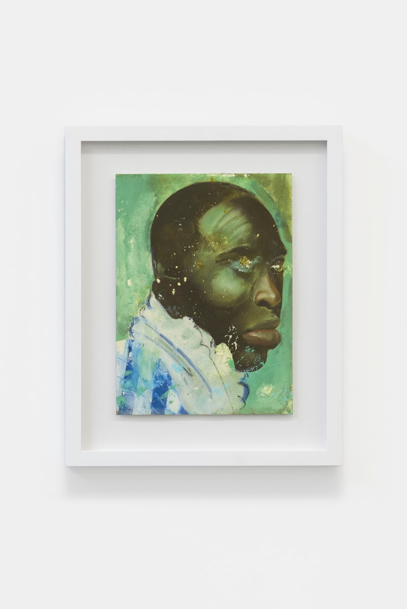 "I really enjoyed a trio of small works on paper by L.A. painter Devin B. Johnson, featuring a moody trio of Black figures with inscrutable gazes, made up of deftly applied swathes and splatters of paint."