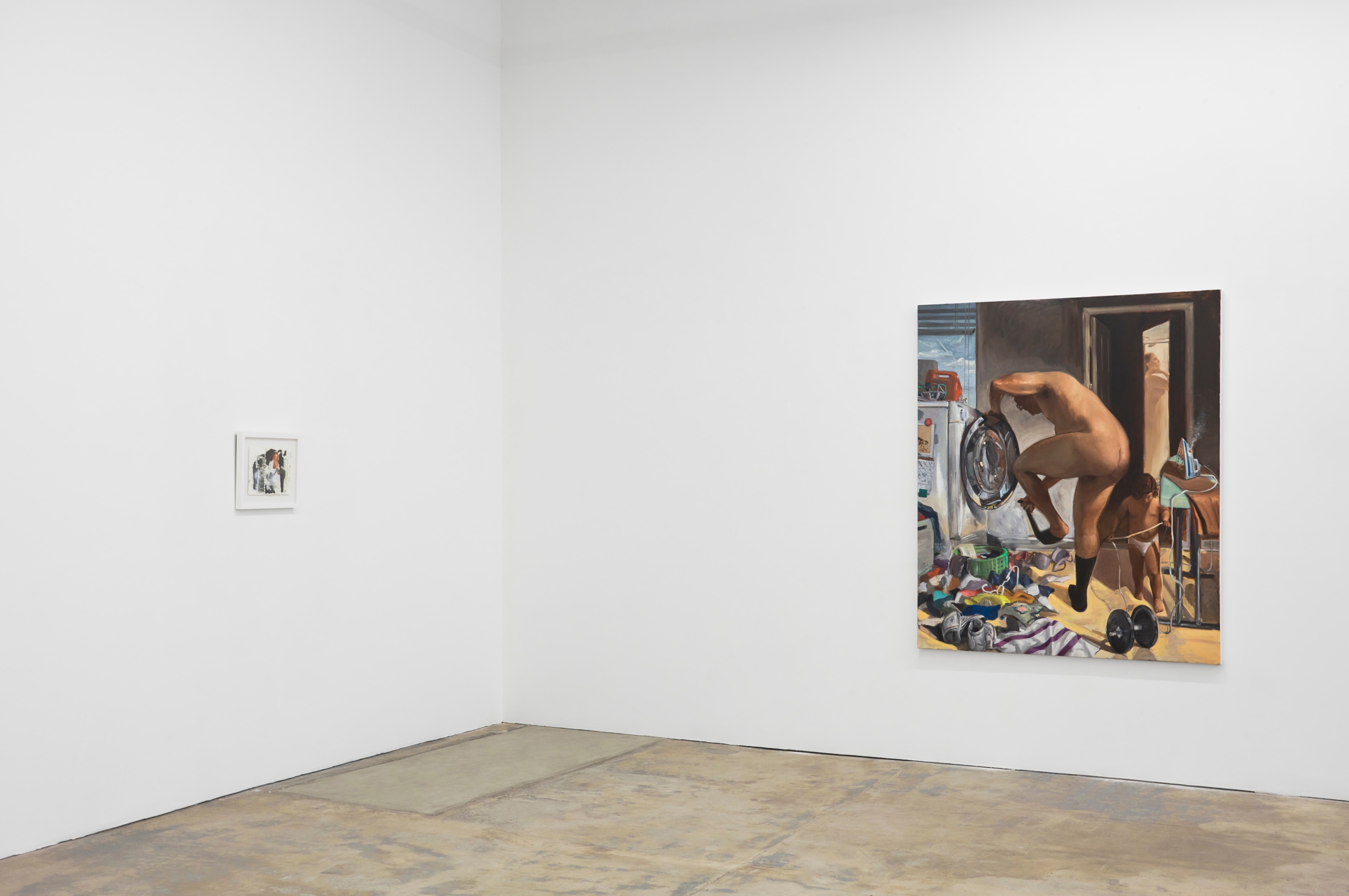 At the End of the Day, Larry Madrigal’s painting, provides a lovingly banal retort to the anarchy in the foreground. The subject’s exposed testicles appear to posit the question: were you asleep when the buffalo waked, and was it all a dream?