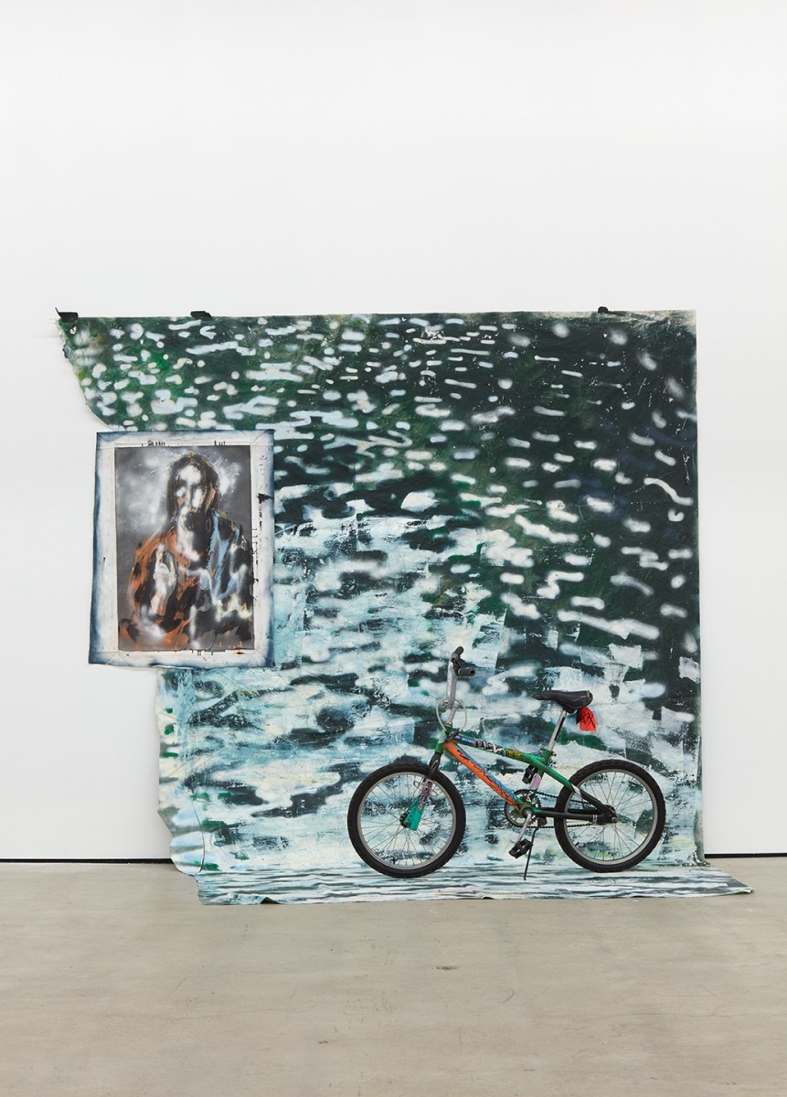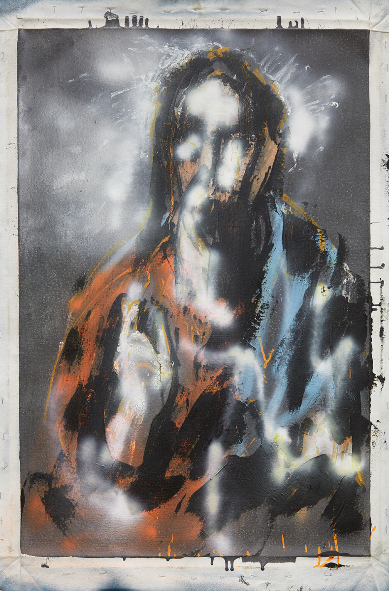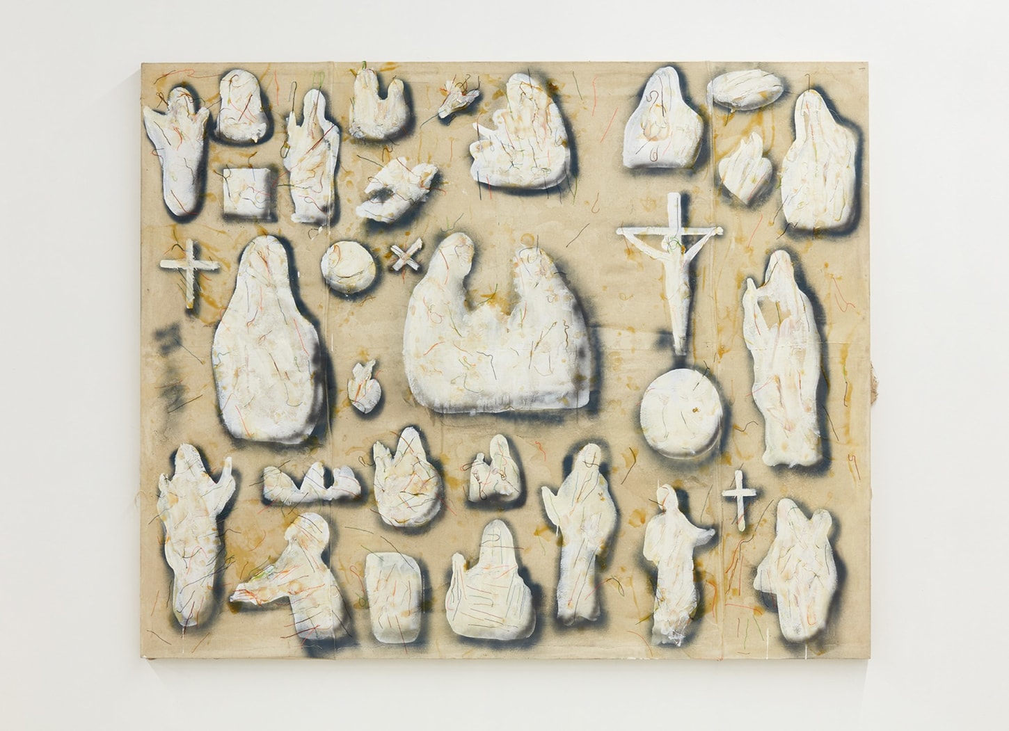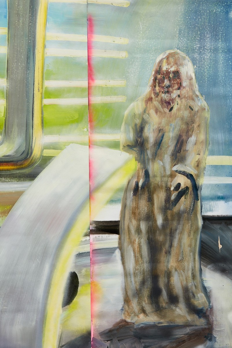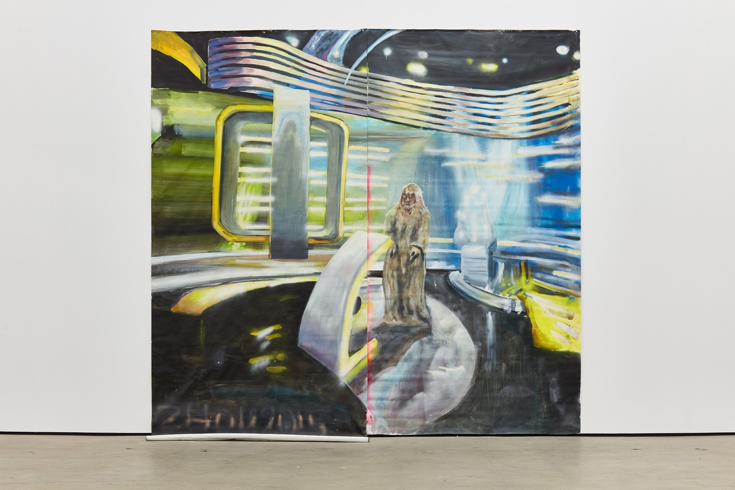juxtapositions of kitsch imagery, coded narratives, contingency and contradiction between the visual elements to emanate. At the same time, these very devices eliminate the artist’s predetermined possible significance and instead evoke variable readings from various viewers. He reworks the classical and the kitschy at the same time with a listless attitude, so that everything, instead of creating new meanings, works to disrupt and undo one and other on the pictorial surface. His paintings empower the viewer with a sense of freedom not to believe certain things—especially the goodness in art—and a sensation of transgression.