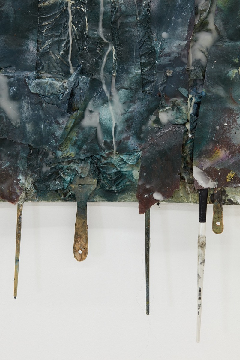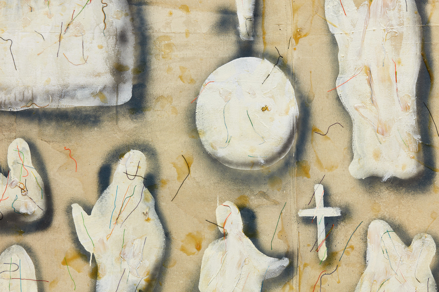 Different from Liao’s reductive approach, Zhou Yilun’s works are overloaded with motifs, pictorial elements, and, increasingly, found illegible objects, causing the pictures to deflate in both formal and semantic terms. Zhou’s paintings can be read as reconstructions of fragmented and seemingly random images that are appropriated from art history, mass media and popular culture. The paradox, the mockery, and the absurdity in his work rely on