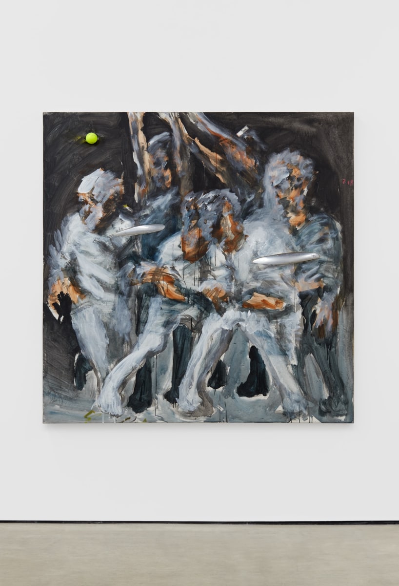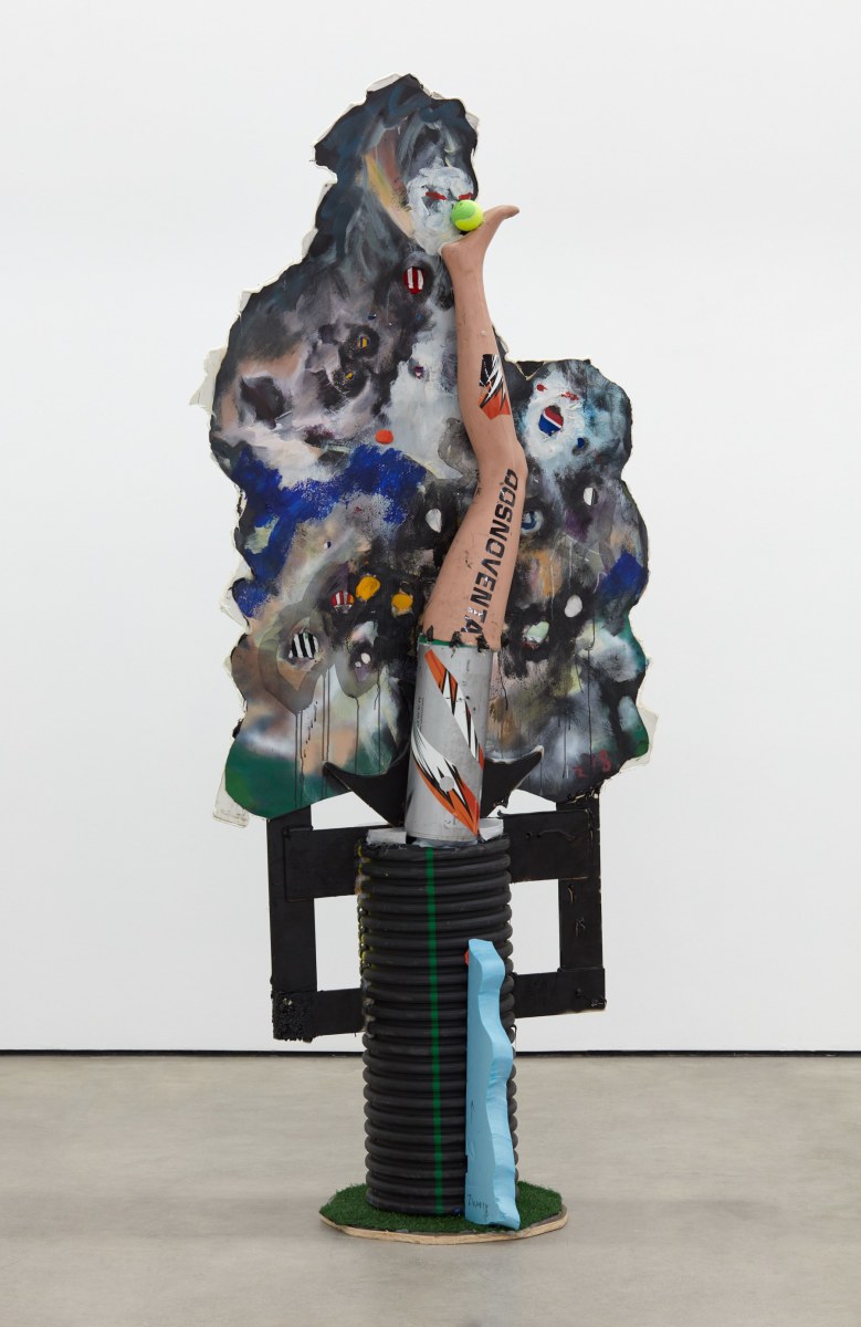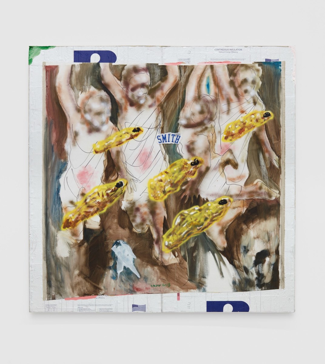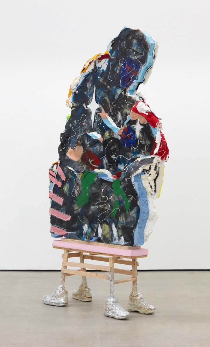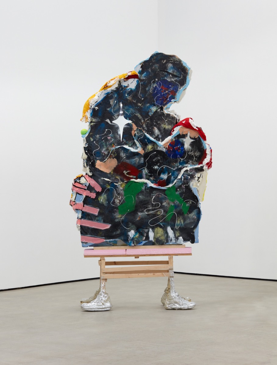 Each of his artworks is formed from the same bricolage of identity—the sum of stretcher, wood, and canvases painted, deconstructed, and constructed again. Images of basketball heroes become deities, which in turn become the scaffolding and skin of his painted sculptures and often stretcherless paintings. Zhou’s practice is alive with Chinese bones and Western sinew and flesh, torn down and built back up with the same materials again and again, so that the elements that once existed as ornament are now integral to the identity and essence of each artwork itself. His works are impossible monuments to the necessarily unnecessary, yet beautiful feats of the human machine. The only crime is existence itself, and it is one to be celebrated.
