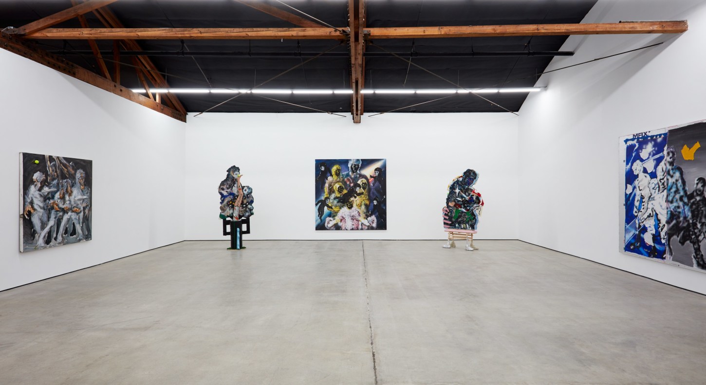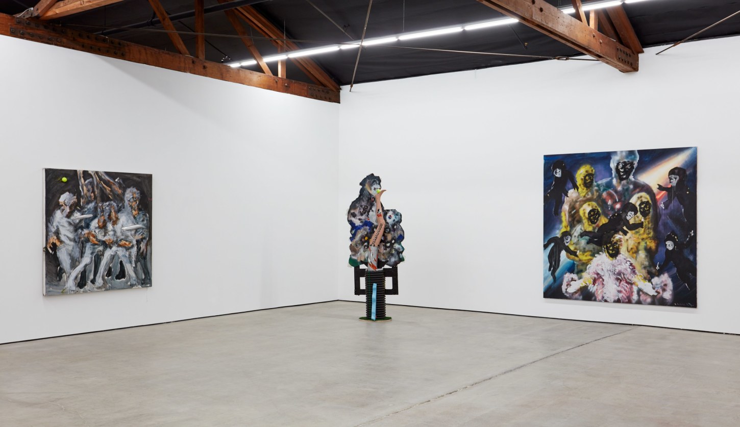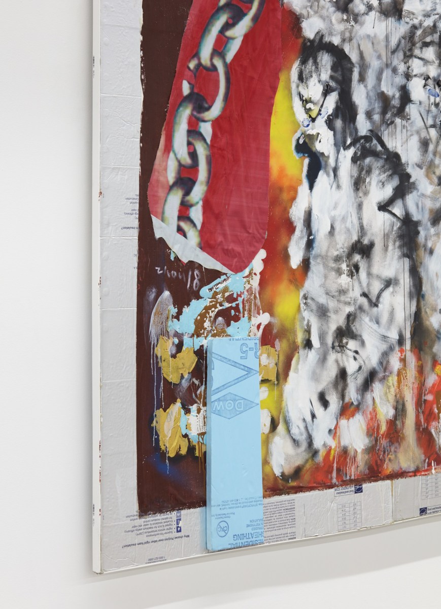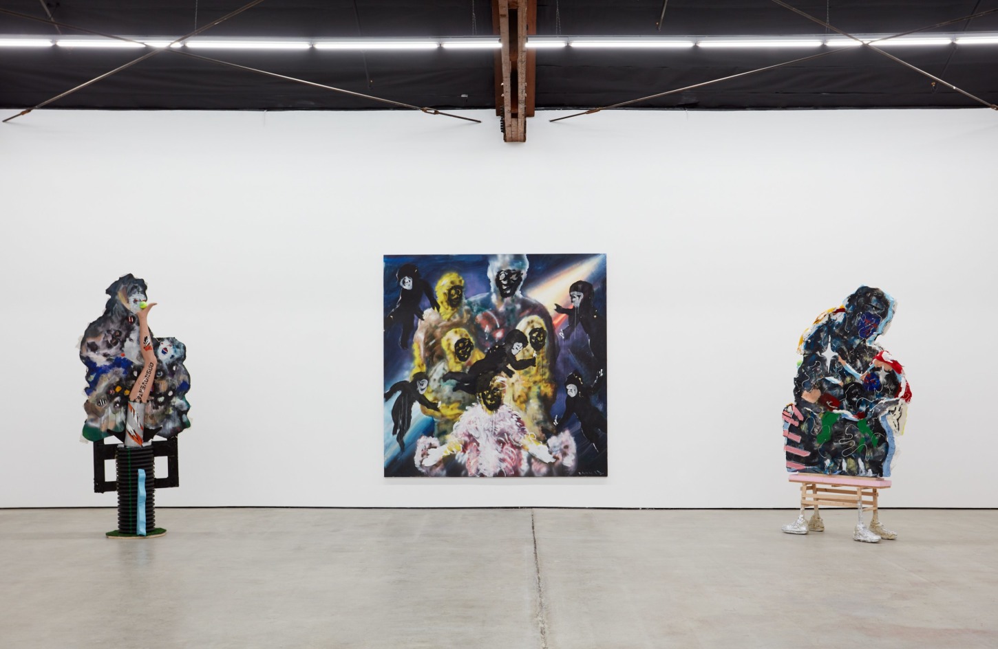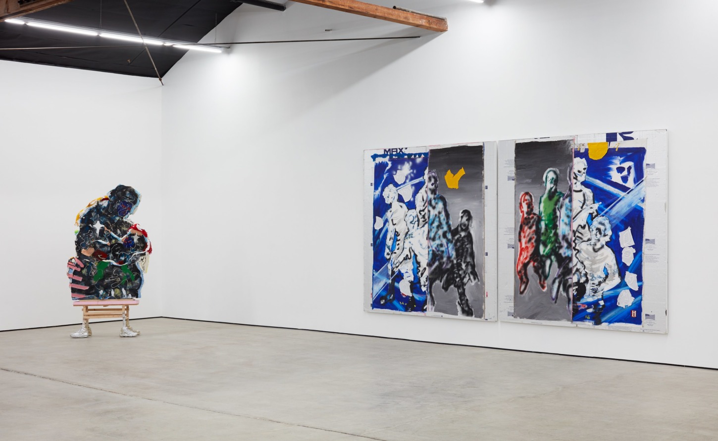 Each of his artworks is formed from the same bricolage of identity—the sum of stretcher, wood, and canvases painted, deconstructed, and constructed again. Images of basketball heroes become deities, which in turn become the scaffolding and skin of his painted sculptures and often stretcherless paintings. Zhou’s practice is alive with Chinese bones and Western sinew and flesh, torn down and built back up with the same materials again and again, so that the elements that once existed as ornament are now integral to the identity and essence of each artwork itself. His works are impossible monuments to the necessarily unnecessary, yet beautiful feats of the human machine. The only crime is existence itself, and it is one to be celebrated.