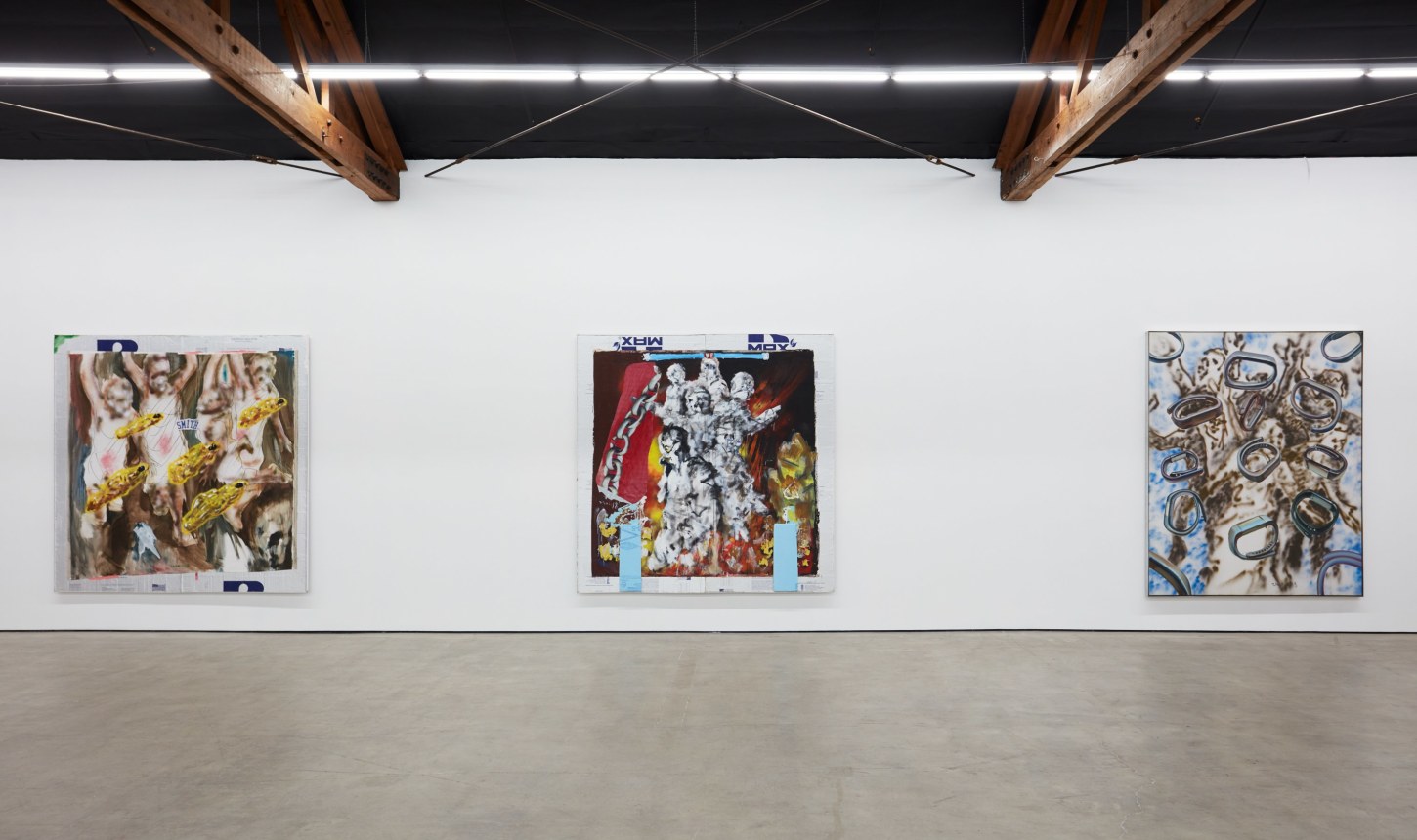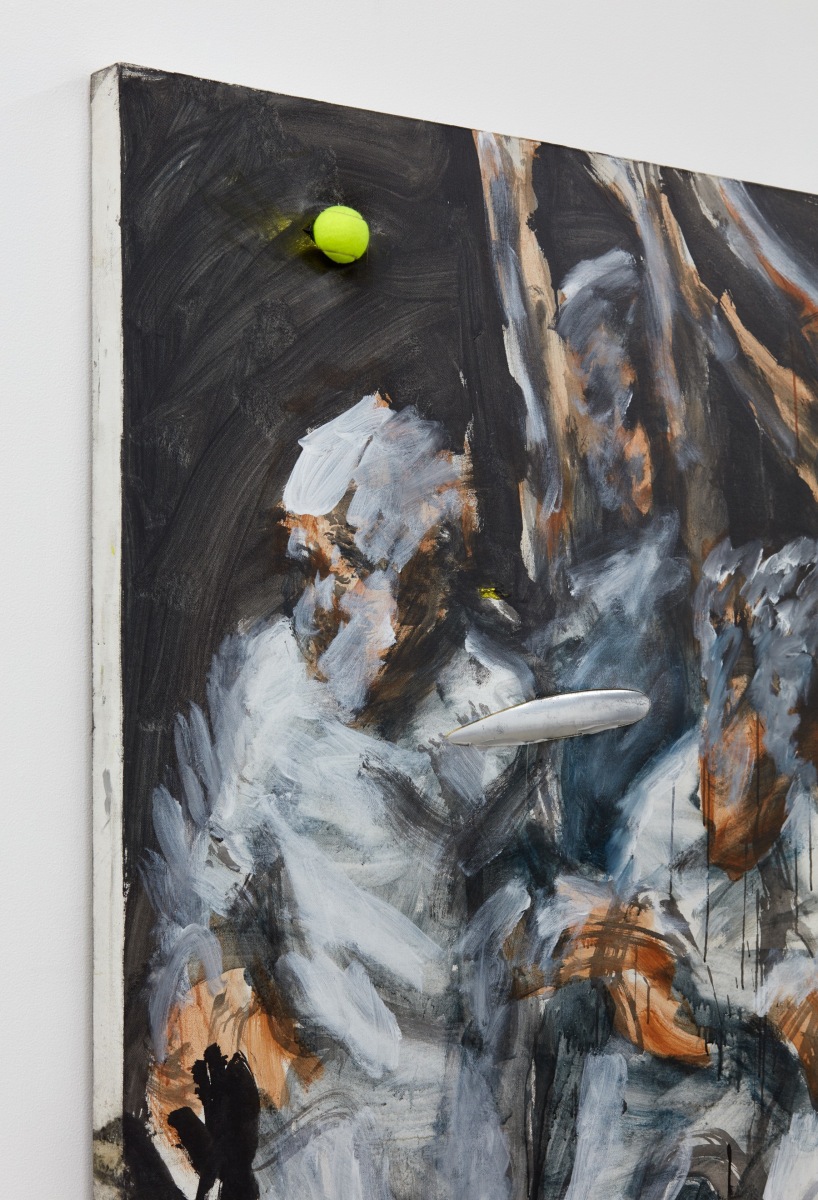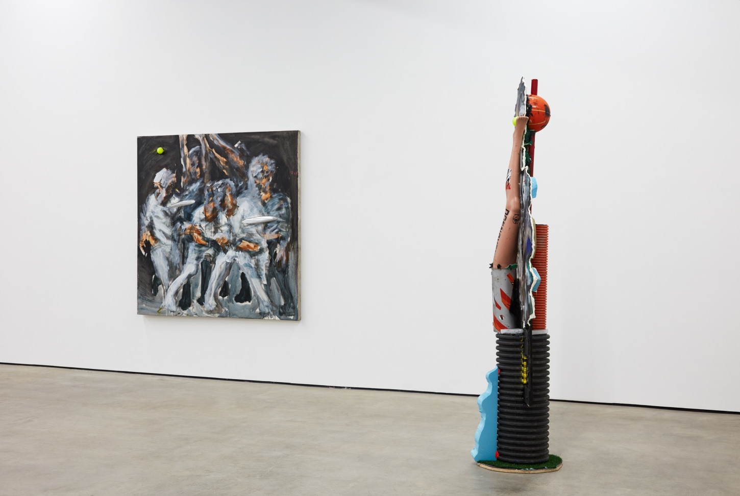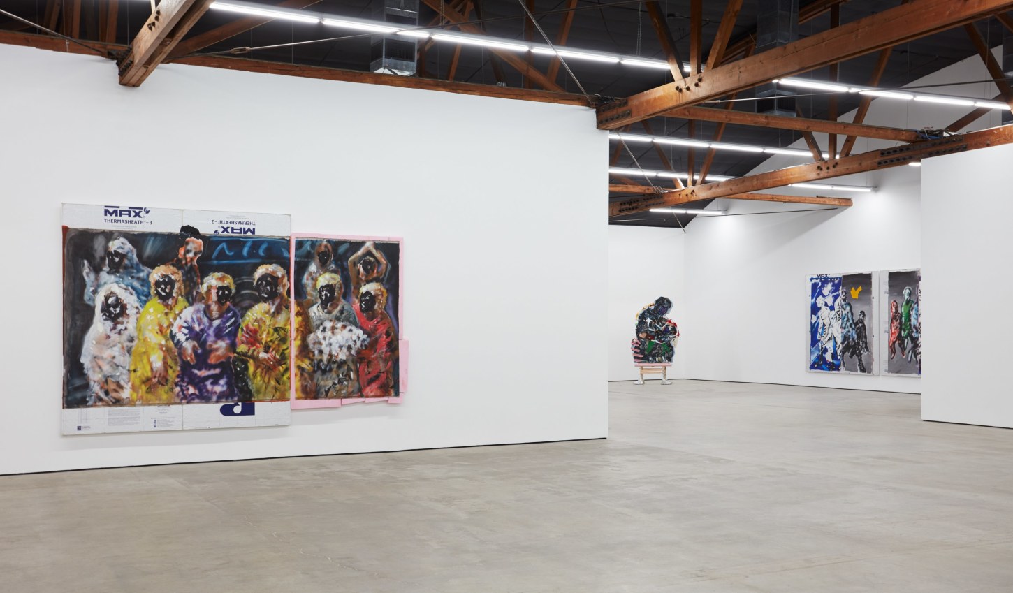 Each of his artworks is formed from the same bricolage of identity—the sum of stretcher, wood, and canvases painted, deconstructed, and constructed again. Images of basketball heroes become deities, which in turn become the scaffolding and skin of his painted sculptures and often stretcherless paintings. Zhou’s practice is alive with Chinese bones and Western sinew and flesh, torn down and built back up with the same materials again and again, so that the elements that once existed as ornament are now integral to the identity and essence of each artwork itself. His works are impossible monuments to the necessarily unnecessary, yet beautiful feats of the human machine. The only crime is existence itself, and it is one to be celebrated.