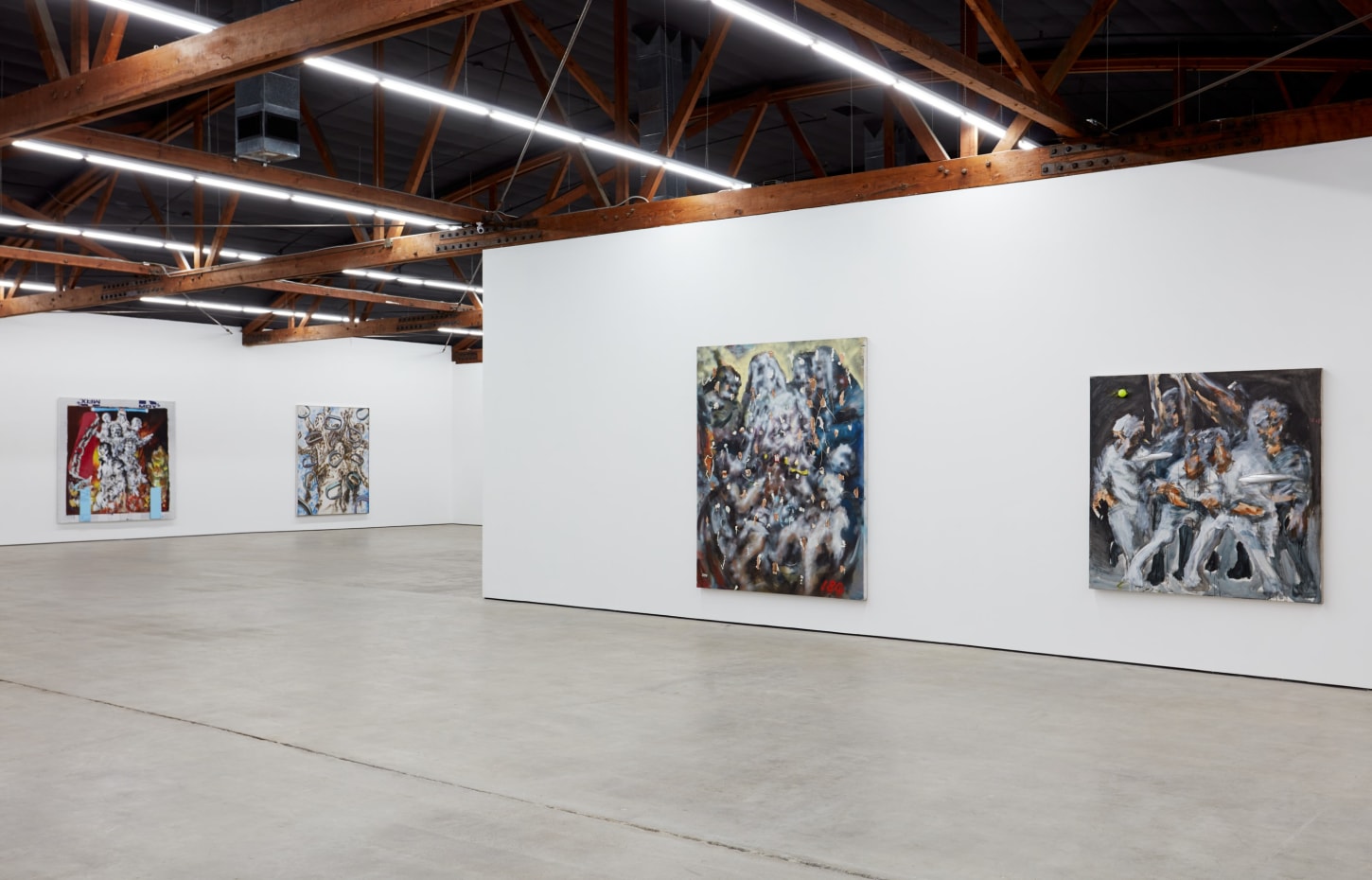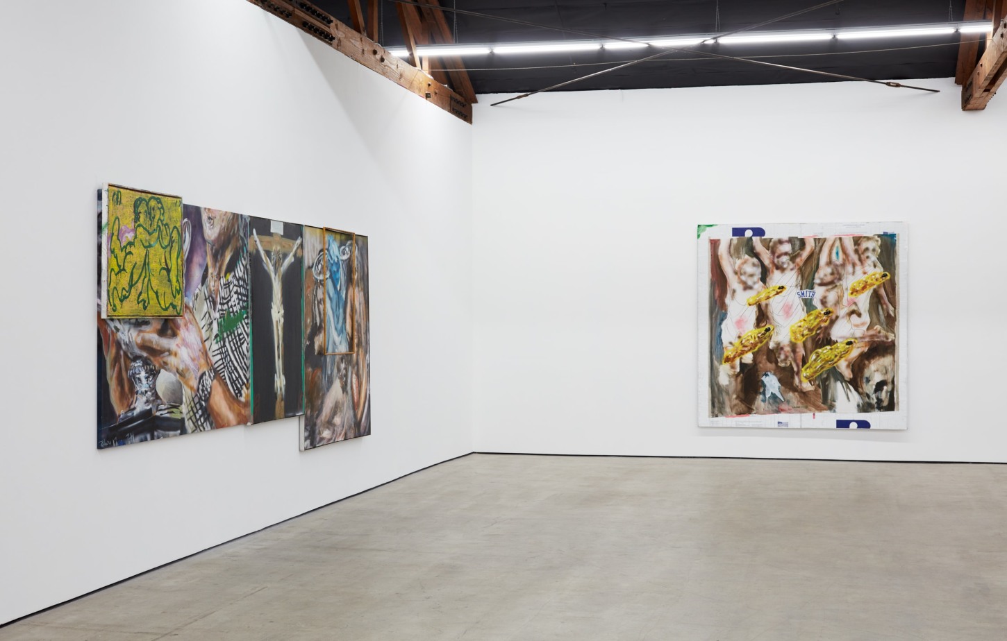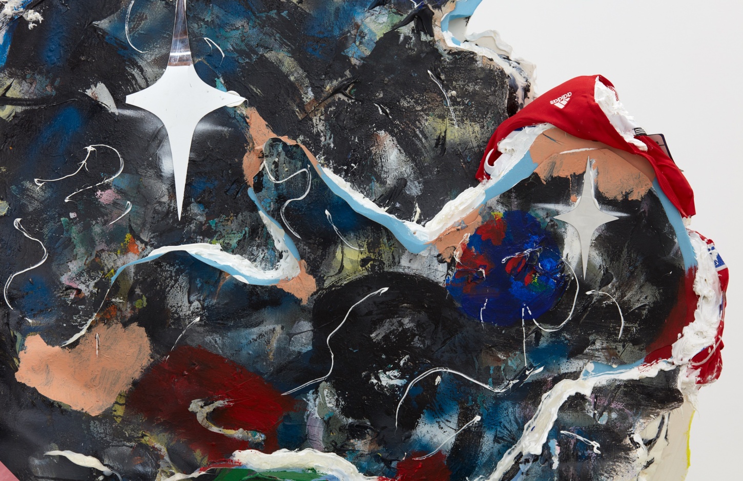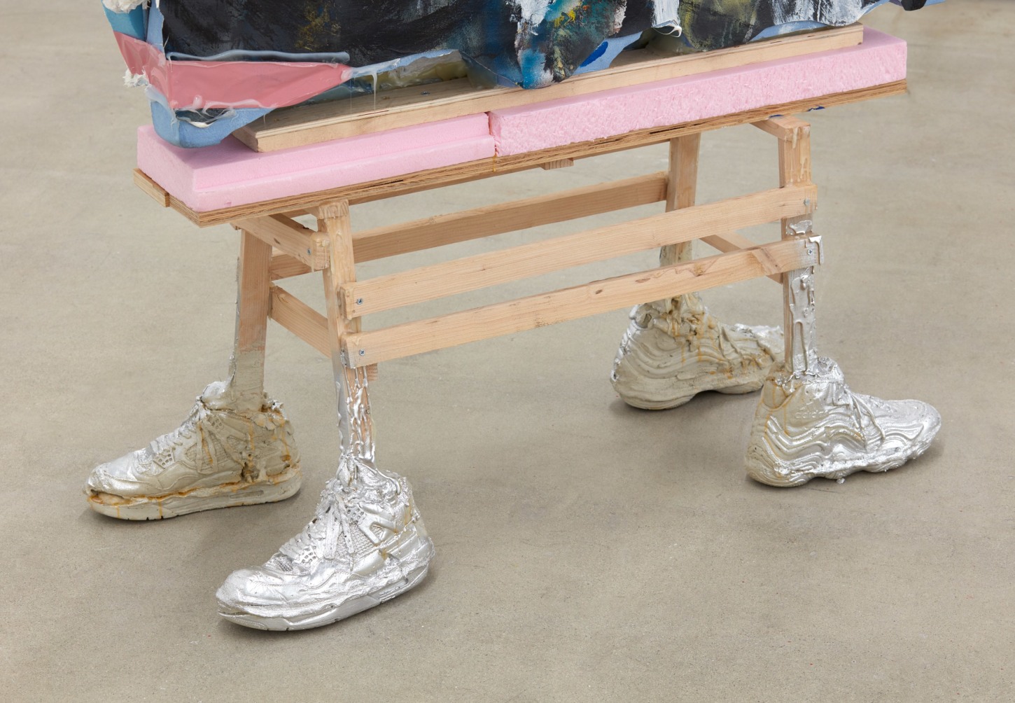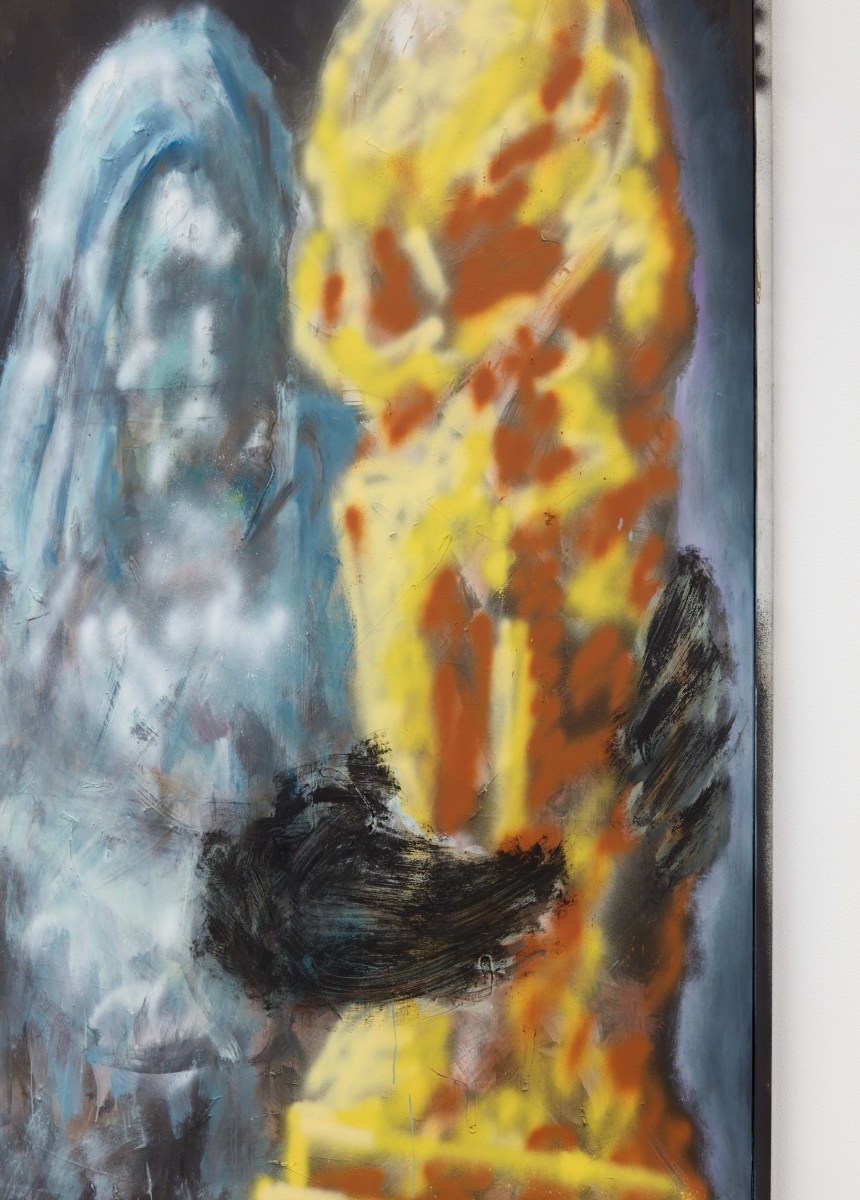 Each of his artworks is formed from the same bricolage of identity—the sum of stretcher, wood, and canvases painted, deconstructed, and constructed again. Images of basketball heroes become deities, which in turn become the scaffolding and skin of his painted sculptures and often stretcherless paintings. Zhou’s practice is alive with Chinese bones and Western sinew and flesh, torn down and built back up with the same materials again and again, so that the elements that once existed as ornament are now integral to the identity and essence of each artwork itself. His works are impossible monuments to the necessarily unnecessary, yet beautiful feats of the human machine. The only crime is existence itself, and it is one to be celebrated.