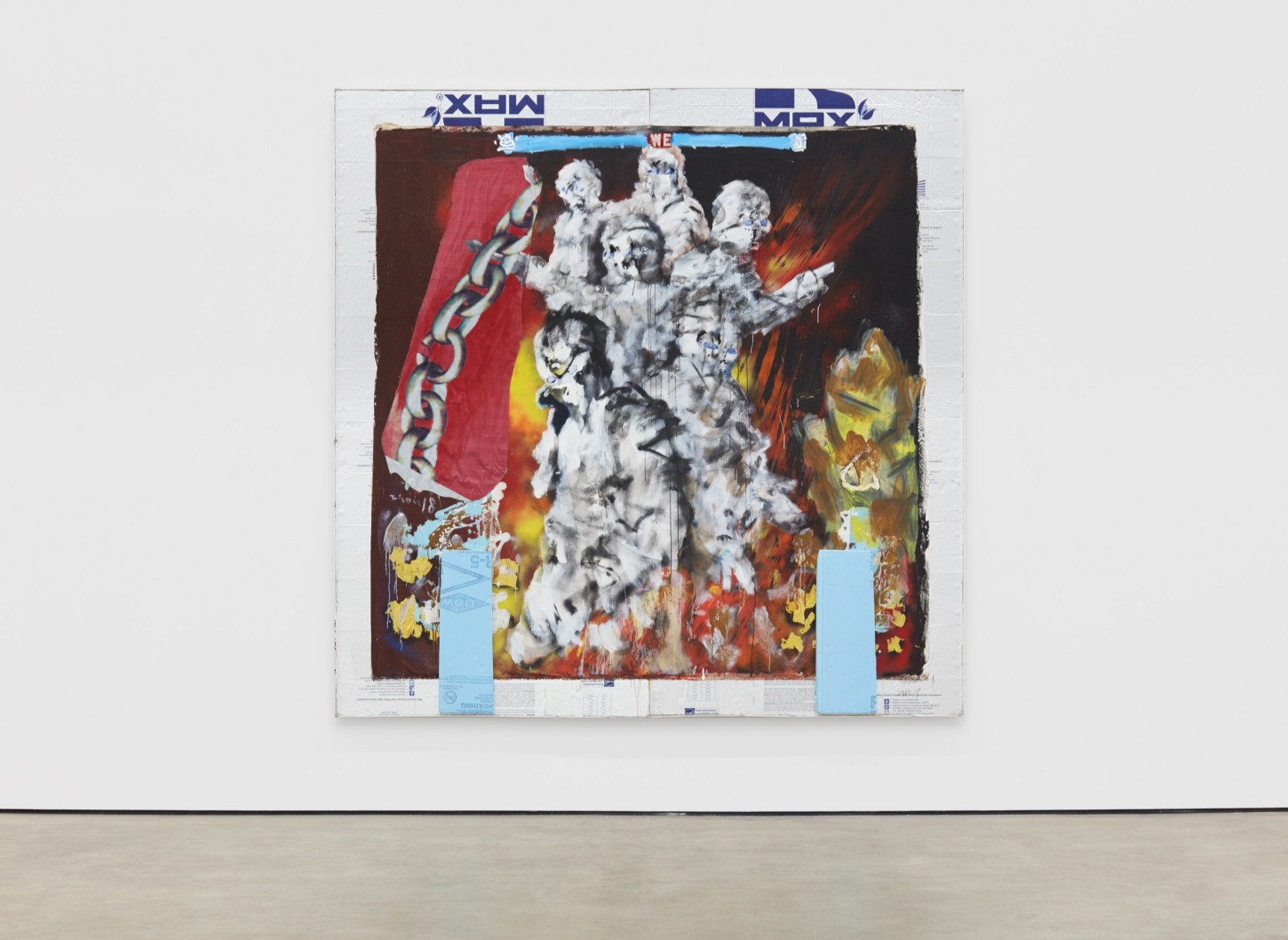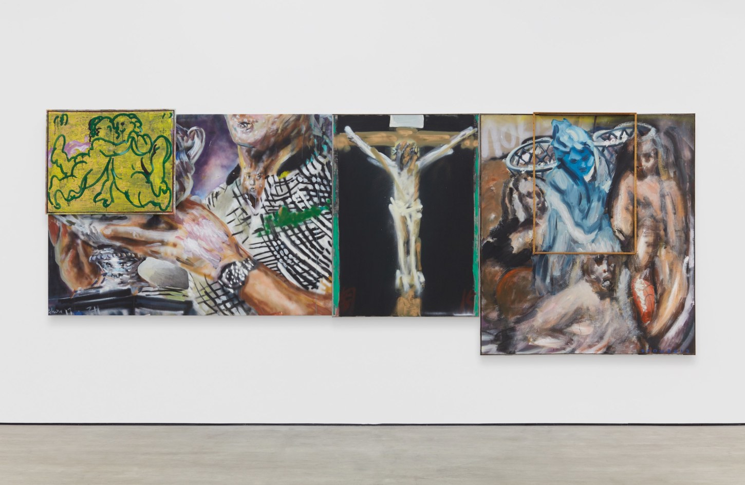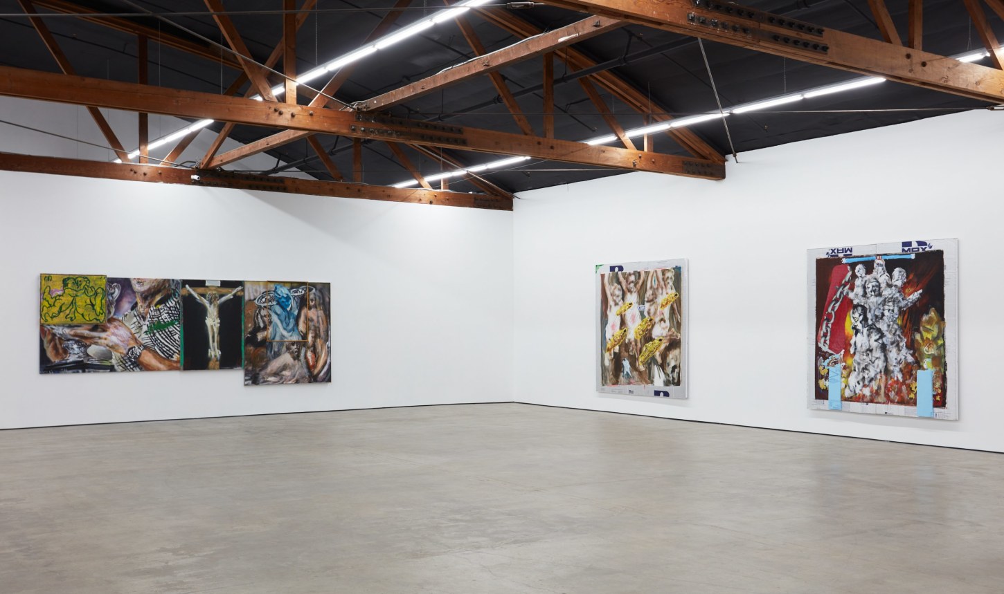 然而“装饰于罪恶”并不是周轶伦作品的同义词。虽然他的启蒙来自于上学期间模仿西方、以犹太和基督艺术家为主的经典的训练,但他更关注日常生活中劳动者搭建、拆建、刷颜料、改颜色的创作,以及他从小就崇拜和模仿的美国篮球运动员、嘻哈艺人、黑人明星。周轶伦同时借用和瓦解文艺复兴、巴洛克、浪漫主义时期的技法来作为自己反思、颠覆和嘲弄当下全球化体系的手段。这就好比是拉斐尔联手碧昂丝、Jay-Z的夫妻组合一起癫狂,戈雅摇身一变成为篮球明星Allen Iverson,德拉克洛瓦跟Weezy一起喝昂贵香槟抽大麻。这一幕幕都通过微信直播。