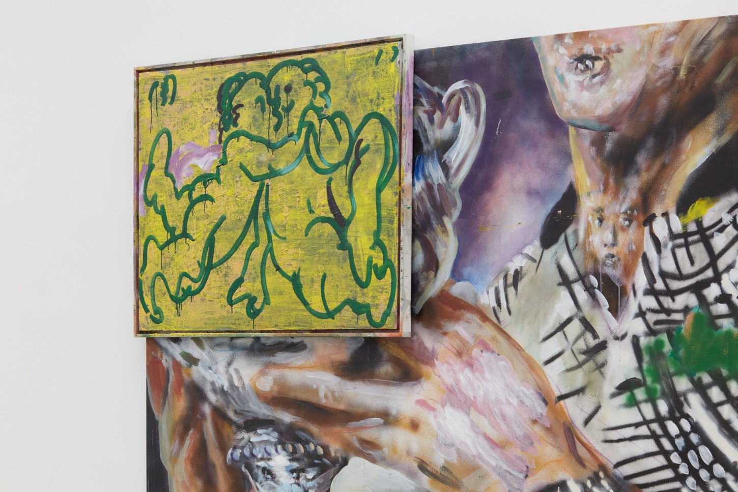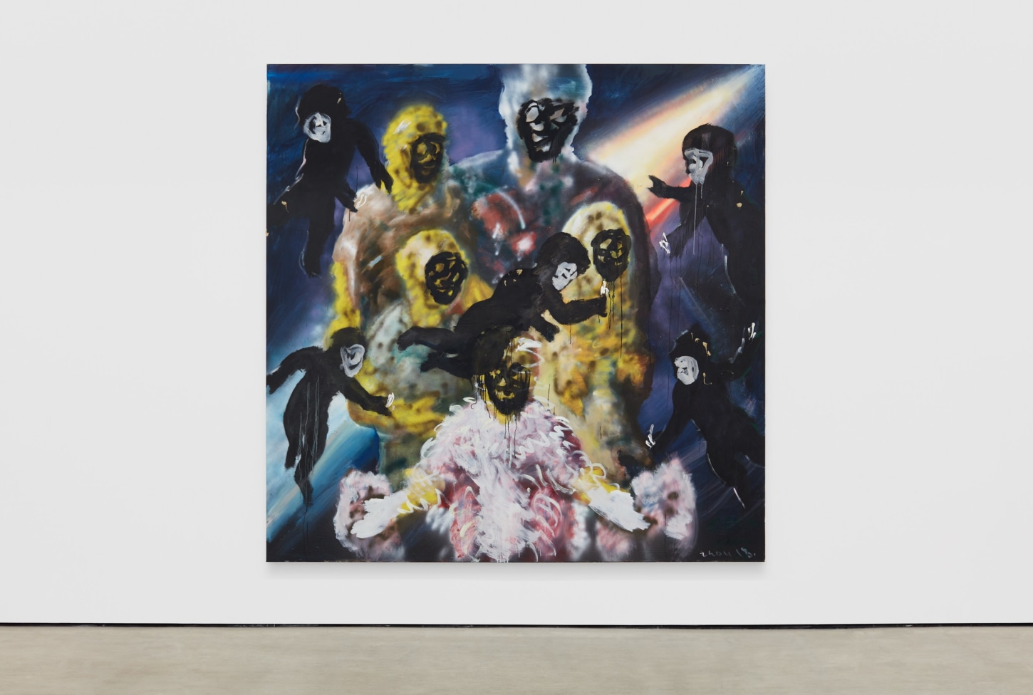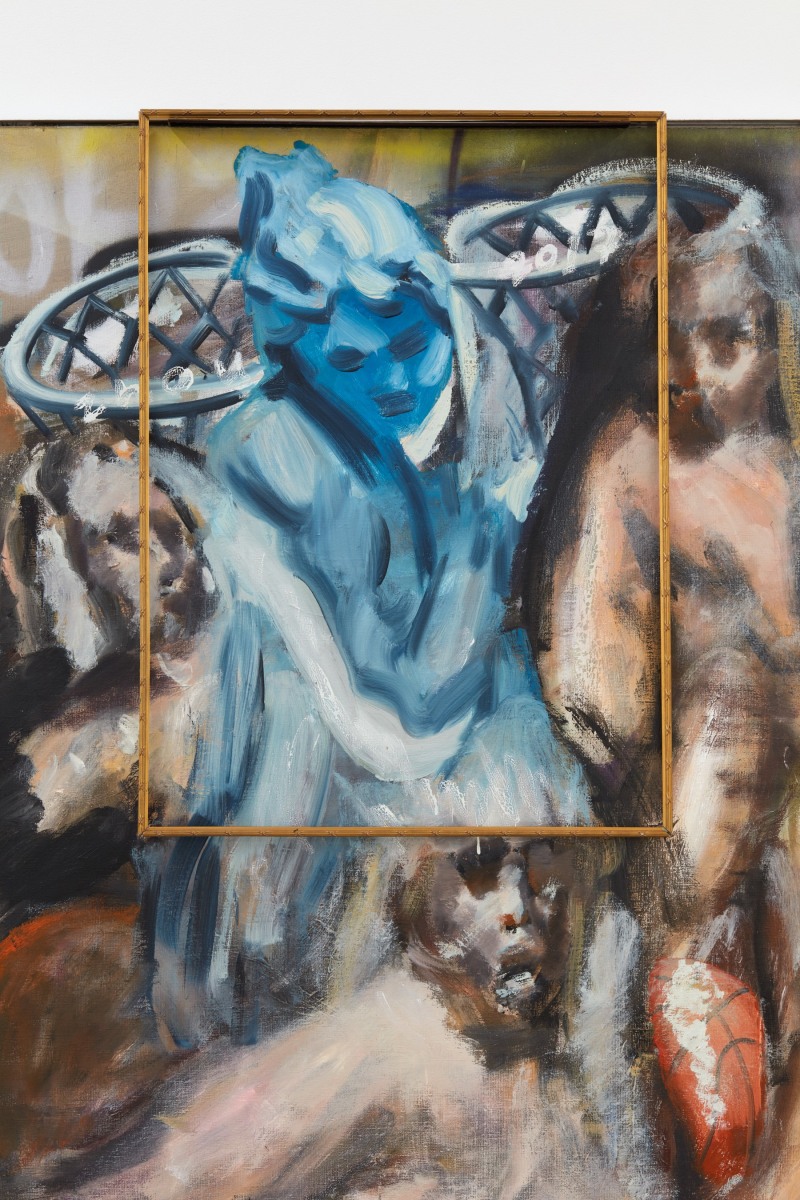 Ornament and crime are not synonymous to Zhou Yilun, however. His influences begin with the Western, Judeo-Christian canons he studied and was trained to emulate in school, but skew more heavily to the laborers he saw building, tearing-down, painting, and repainting the structures in the city surrounding him, and the American basketball players, hip-hop stars, and black celebrities he grew up mythologizing and imitating. Zhou lifts and distorts techniques inherited from the Renaissance, Baroque, and Romantic eras, revisiting, perverting, and parodying their ideas for the new globalist regime. This is Raphael going Apeshit with The Carters, Goya crossing-over Allen Iverson, Delacroix sipping Cristal and smoking blunts with Weezy, all broadcast to the far east over WeChat.